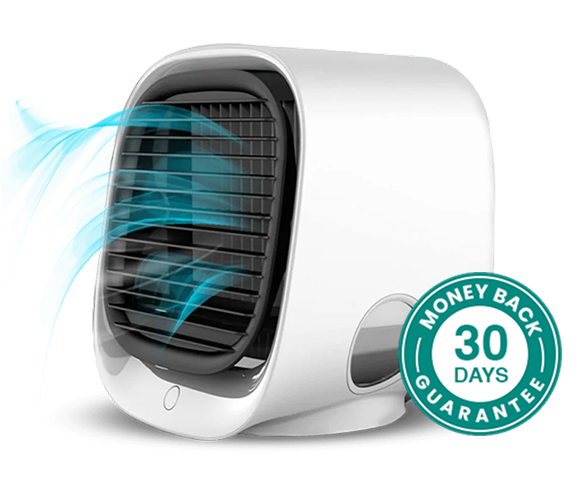 Breeze Box portable air chiller uses Insta-Frost Technology that helps turn hot air into cold, moist air.